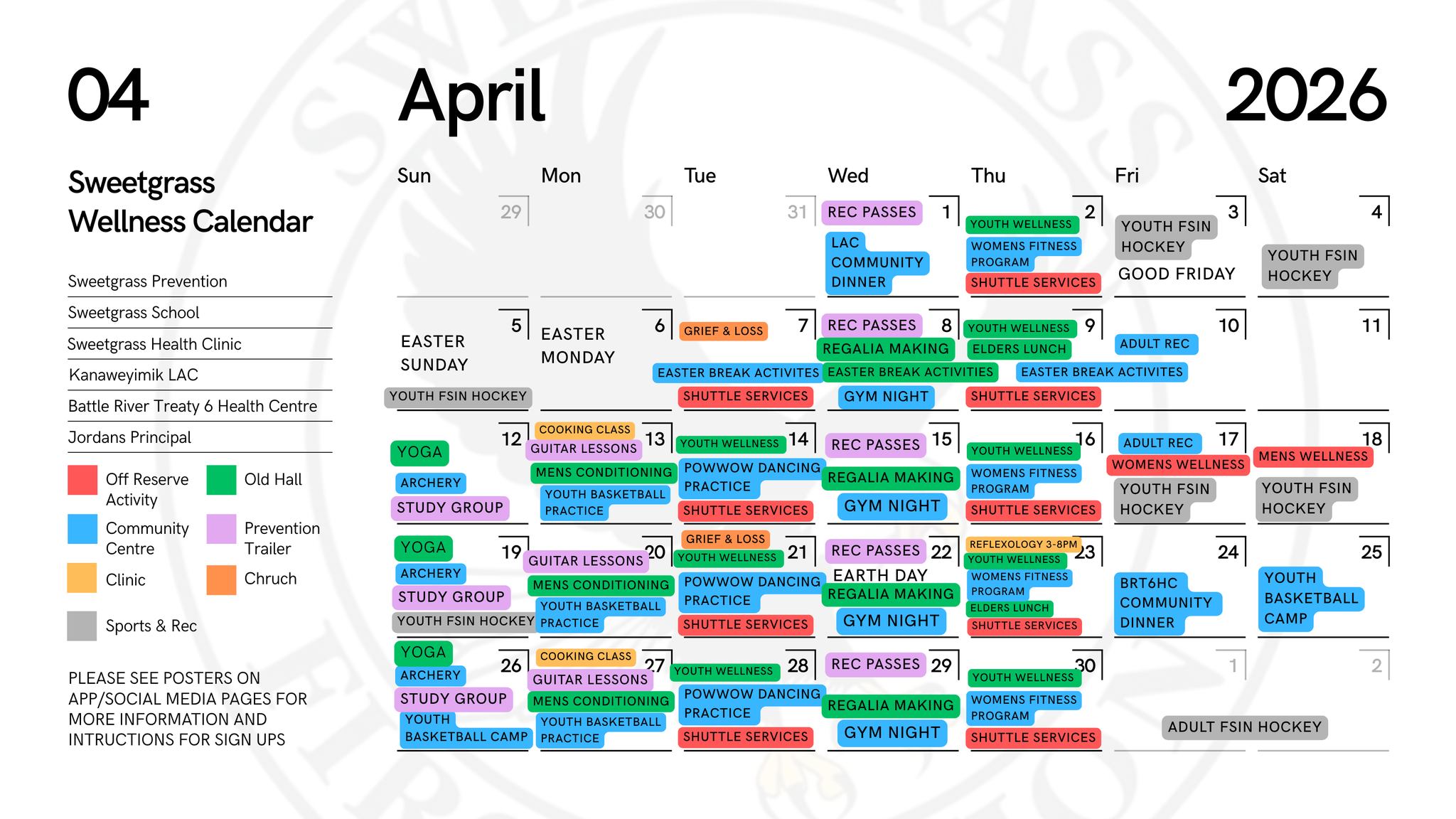APRIL 2026. Please check the website calendar, mobile app, or social media pages regularly for posters with more detailed information and updates on events! PLEASE NOTE THAT CALENDAR IS SUBJECT TO CHANGE WITHOUT NOTICE!