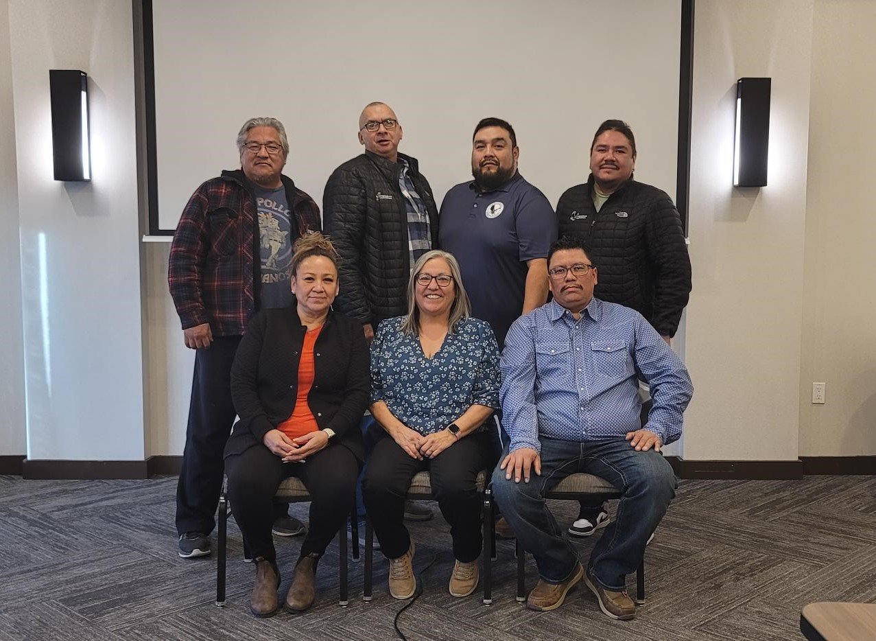 Left to Right, Top - Councillor Lamarr Oksasikewiyin, Councillor Donovan Arcand, Councillor Isaac Thomas, Councillor Hazen Paskimin, Seated - Councillor Trina Albert, Chief Lorie Whitecalf, Councillor Kelsey Pooyak